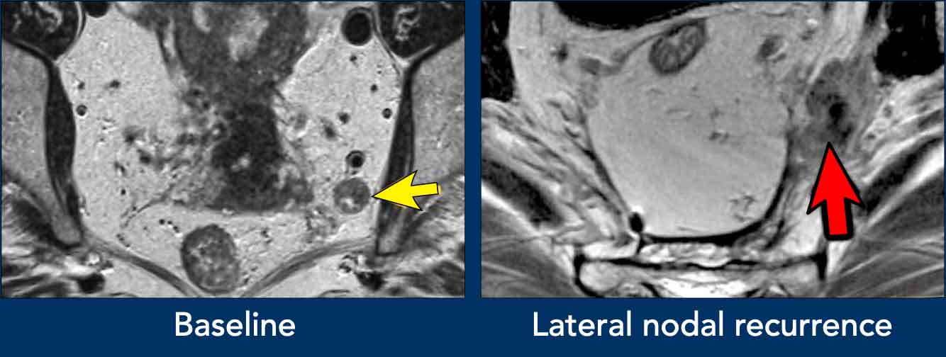 MRI local staging stratifies patients by risk and guides treatment selection.