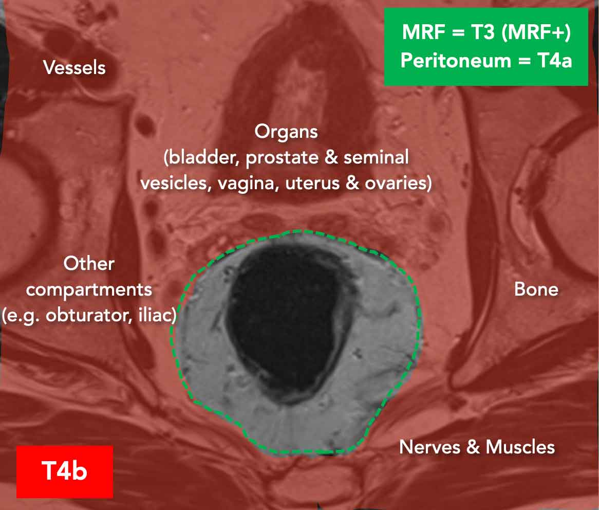- Mesorectal fascia (MRF) involvement