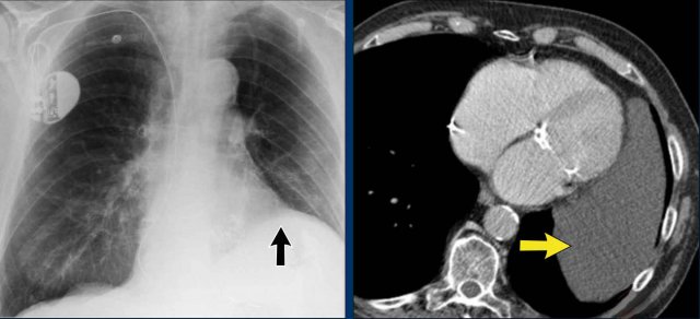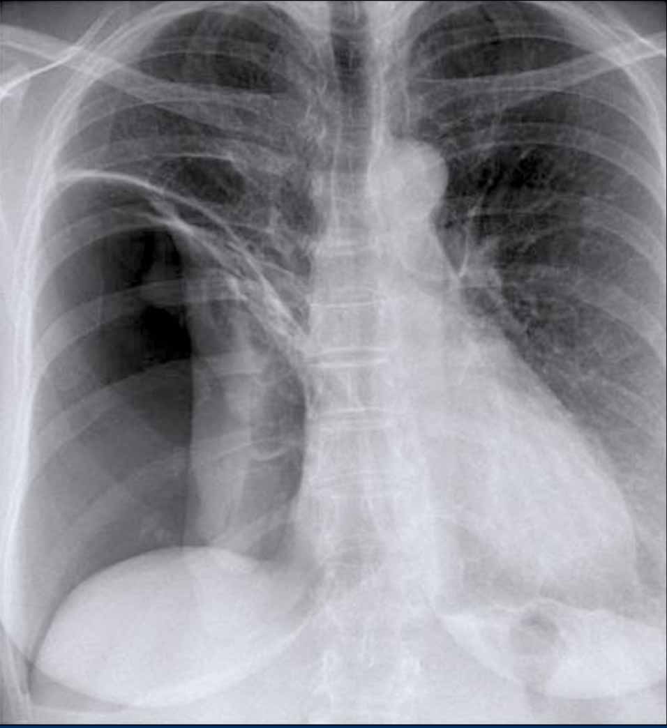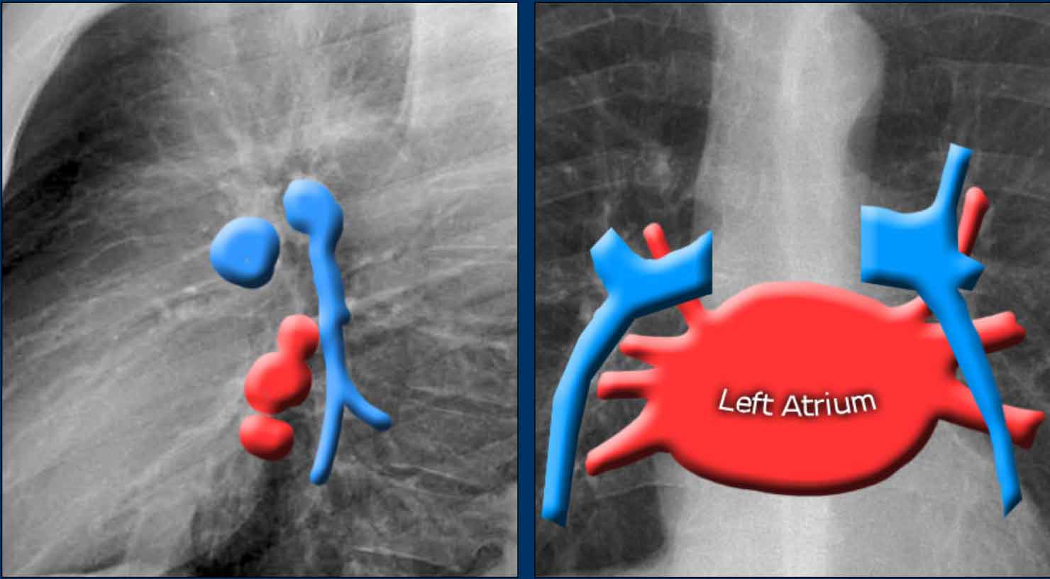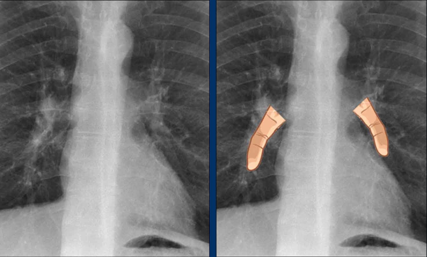 • Silhouettes (e.g., the aortic knob or left ventricular contour)