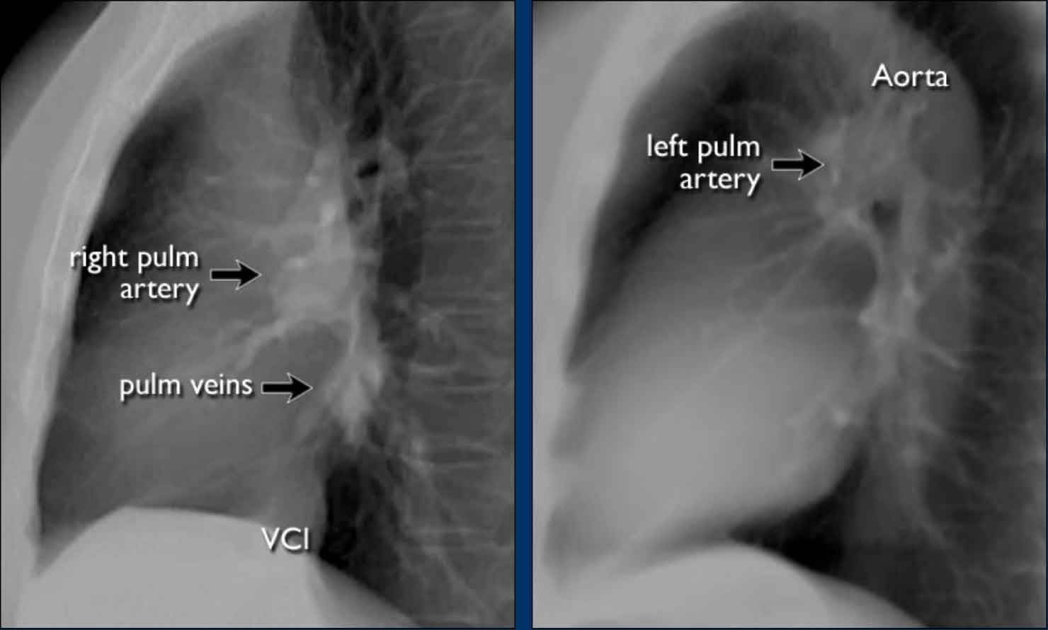 Understanding normal hilar anatomy on the lateral view facilitates detection of abnormalities.