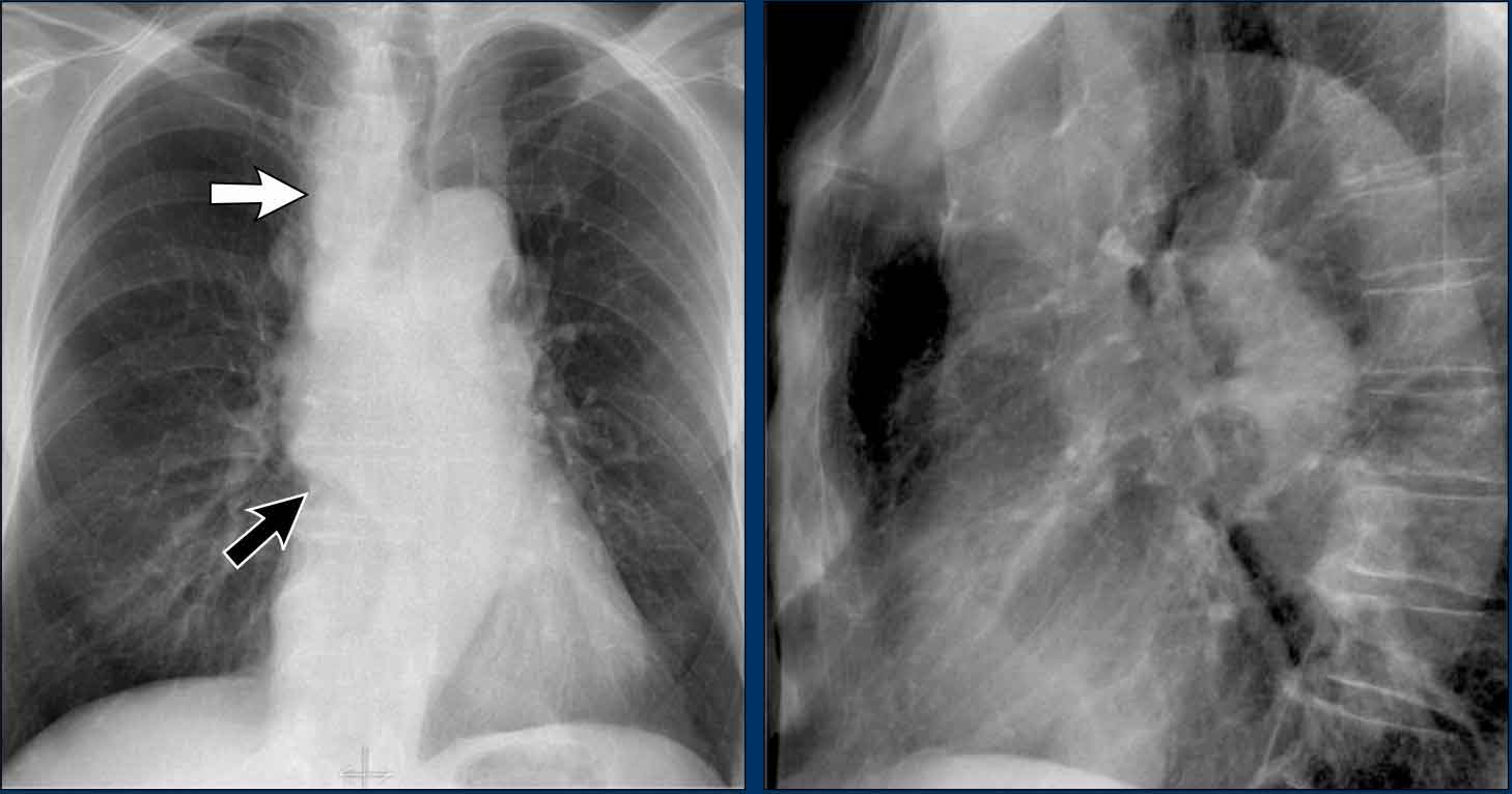 When the superior mediastinum appears widened on the PA view, the lateral view is useful to localize the abnormality.